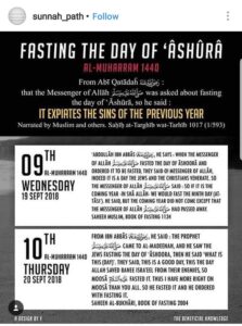 > **”میں اللہ سے امید رکھتا ہوں کہ عاشوراء (10 محرم) کا روزہ ایک سال پچھلے گناہوں کا کفارہ بن جائے گا۔”** (صحیح مسلم)
